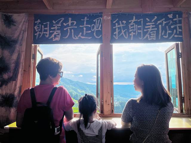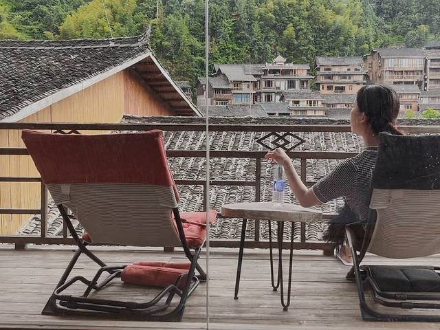 我们住的是自在.山居野奢连锁客栈,总体来说还是挺推荐的,732元两晚,免费升级了带有阳台的,阳台景色也不错,工作人员态度超级好,位置也是很好的,就在中巴下车点附近,离主街2.3分钟步行,现在景区民宿都是改成在中巴下车点接,以前是可以在高铁站接。