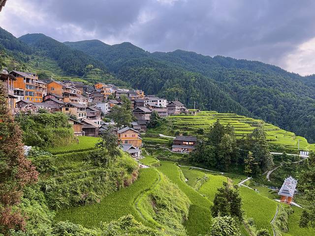 午觉的时候还下雨,下午出门雨就停了,哈哈~出发肇兴侗寨附近的堂安侗寨看梯田,在肇兴侗寨坐免费观光车到终点站坐中巴肇兴-堂安,20元每人来回,小孩免费,20分钟山路十八弯的车程,下车还要走1.5公里山路,可以坐私家车5元每人。