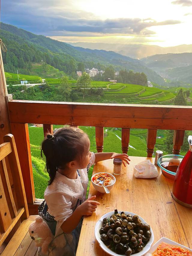 吃饭价格有点高~看着梯田、夕阳吃饭,风景一绝。