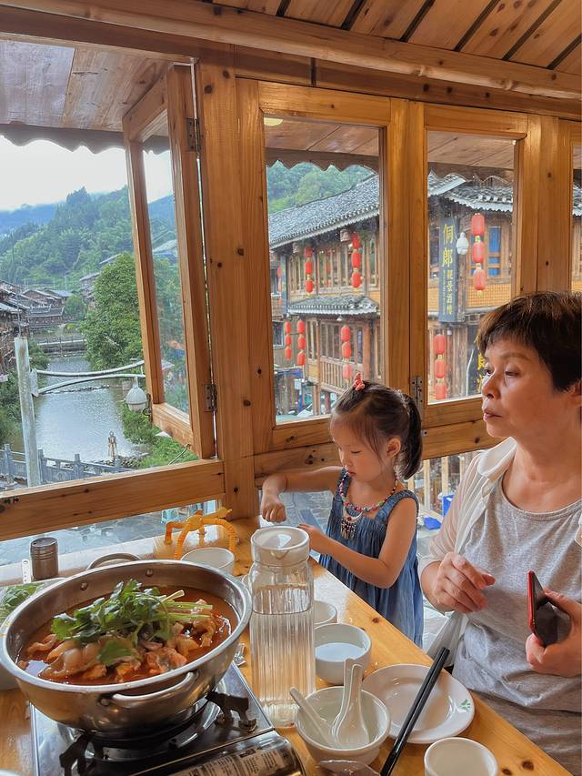 刚感叹我们天公作美,来几天天气都好,天空就下起了细雨,好狼狈哈哈哈,躲进了醉第一楼避雨,顺便吃午饭,点了大众点评的酸汤鱼套餐,吃不惯哈哈哈。