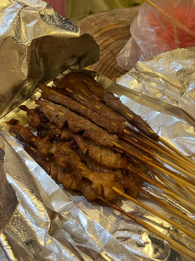 等中巴好多人排队,小孩免费没有座位用手抱着对付山路手都要断掉了(我妈说)更惨的是我们到了终点站已经没有观光车回民宿了,据说观光车18:00下班,后来我们花了20元坐电三轮到民宿,我老妈子说走不动了,最后我一个人出去给她们买西瓜,打包烤猪肉串(我女儿好爱吃)感觉这边没有外卖跑腿服务哈哈。