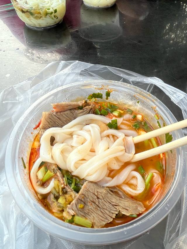 早餐还是廖胖子的酸汤粉,微辣,有点像广州河粉,好吃哦。