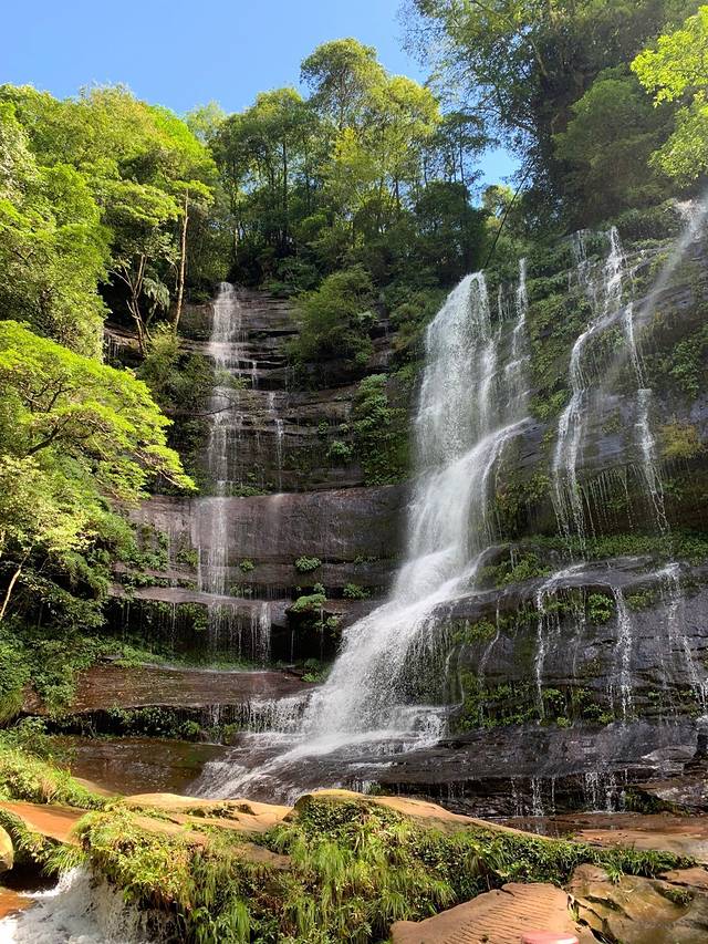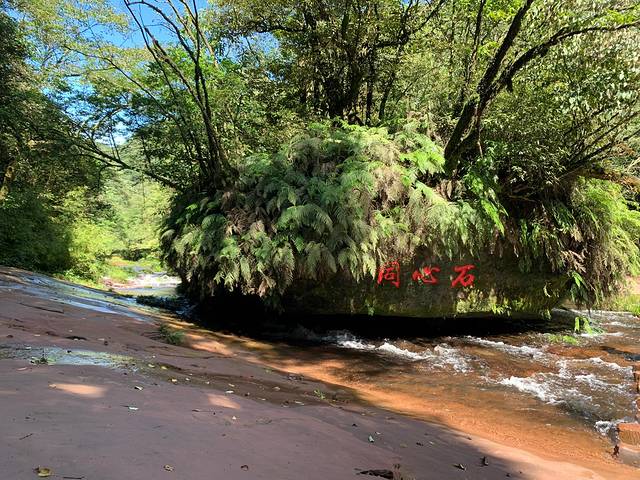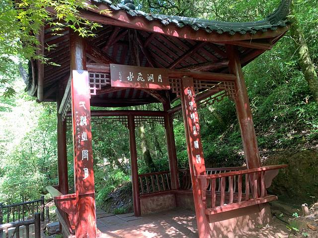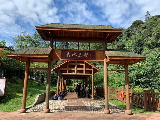 早上吃过早饭,和同屋的美眉一起乘坐观光车向正天台出发。沿途经过景区精华的秀水三韵:香草叠溪、月洞飞水、潘龙瀑布。