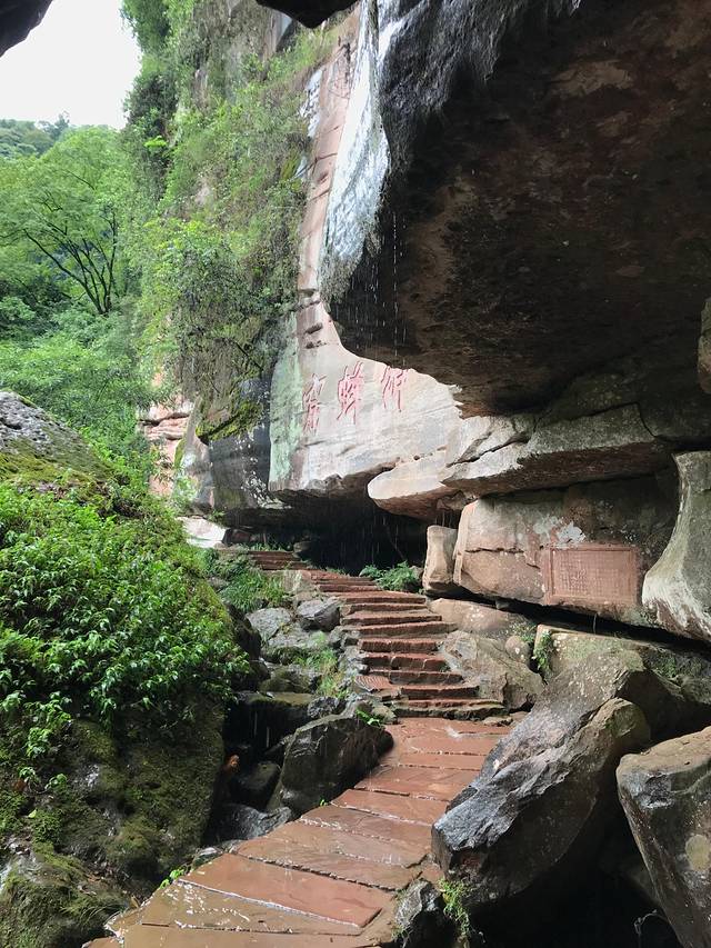 一整天都在下雨。大巴车将我们一行六人载至在山脚的游客中心,购买了观光车票(一天30元,两天45元),我买的两天的观光车票,又买了门票58元。乘坐观光车中午到达位于半山处的民宿(天yiyuan),这个民宿老板比峨眉山的差多了,邛崃人说话本来就不讨喜,且又安排不善,态度还不好。本来下雨就让人烦闷,等了很久才安排了住宿又等一小时用午餐。稍事休息后,即坐观光车下行到山脚的山门处向上拾阶而上。