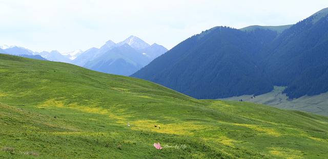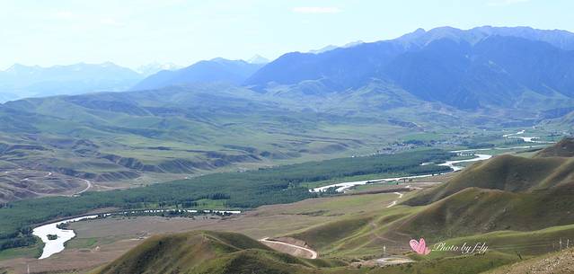 这是昭苏到琼库什台的路上拍的照片,草原、丘陵、群山相互呼应,相映成趣!