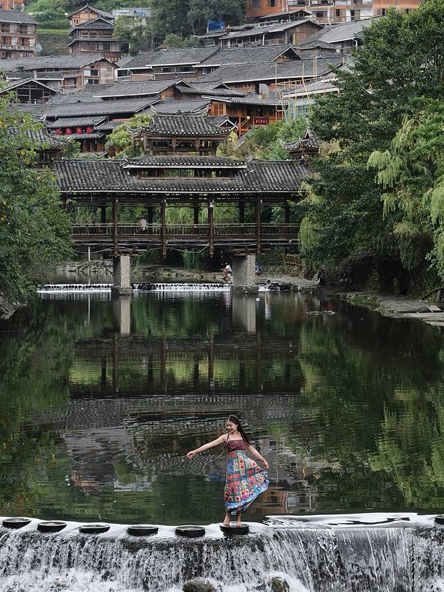 之后就可以按照1-6号风雨桥的顺序去逛景区。出来旅行当然是要拍照,在旅拍服饰店换一身苗服,假装本地人,当然你也可以换自己的衣服去拍一些写真,拍照好看的点我都整理好了,按照这些去找不回出错。