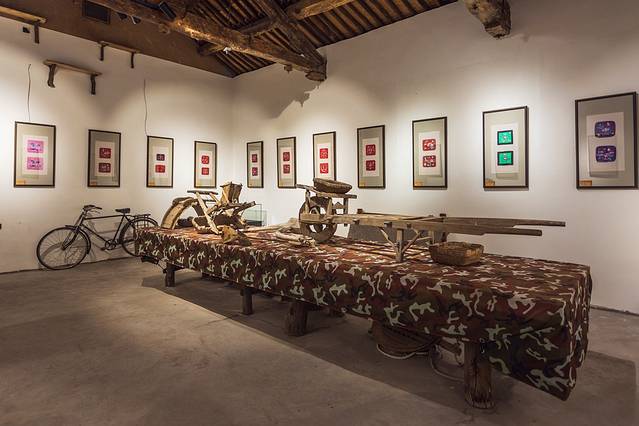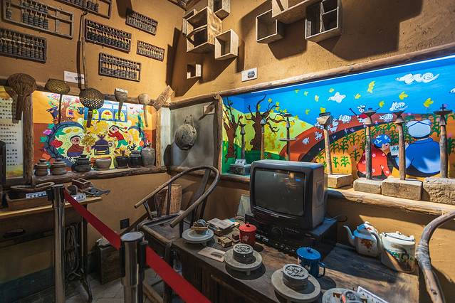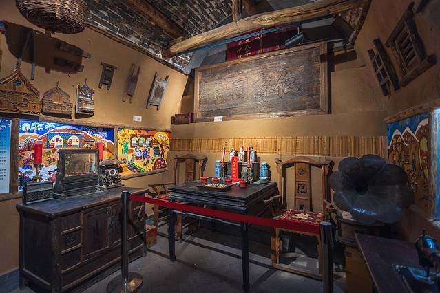 展厅其实是一串连起来的极具陕北特色的窑洞,里面设有农耕用品陈列、乡村工匠、粮食加工、饮食文化、乡村读书驿站、乡村婚庆文化、菜园沟故事及菜园沟书画院,以收藏、展示、传播陕北地区农耕文化、民俗文化为主。