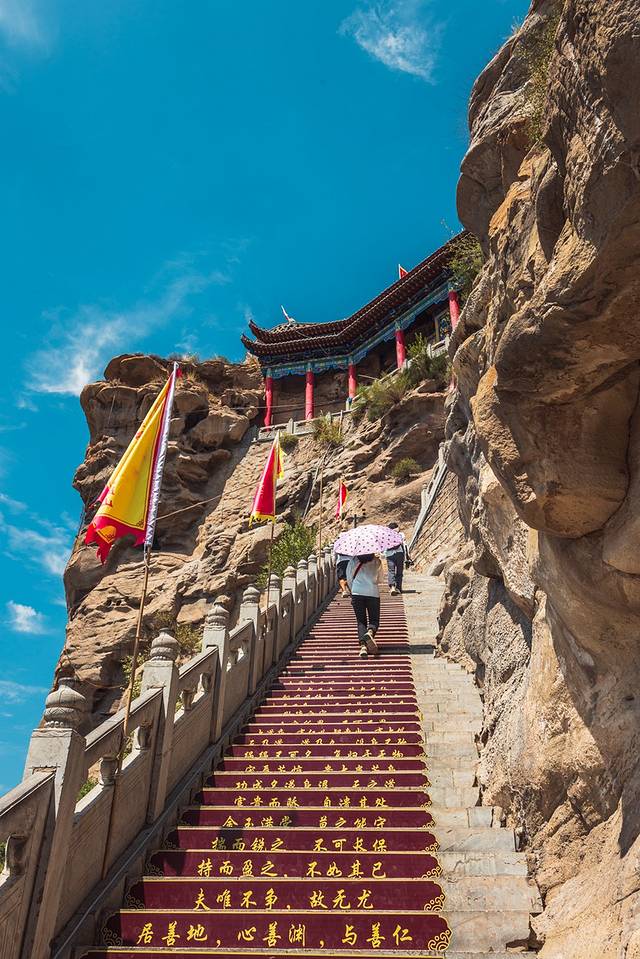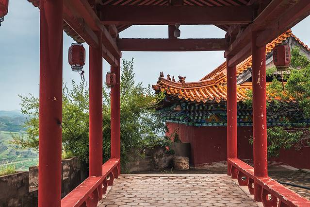 一路前行,移步换景,险、峻、奇的自然风光与儒、释、道三教合一的殿宇浑然一体。红墙黛瓦下,香烟袅袅,不时能遇到带着家人孩子来上香的当地人,这里的香火看来相当旺,能专程爬到山顶上香的,也都是有点诚心在身上的。