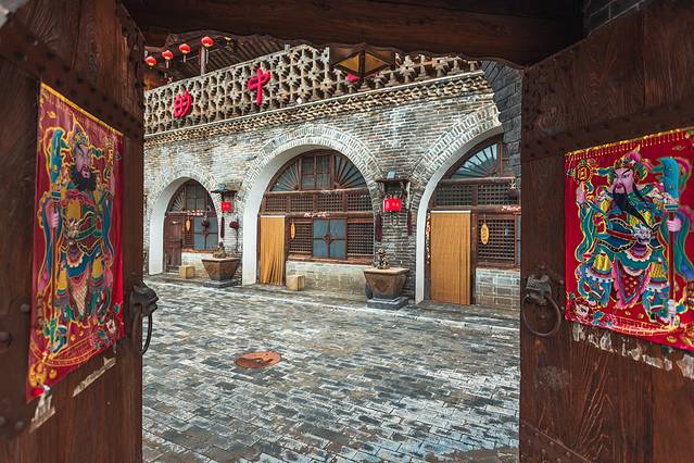 登上这座雄踞城中心位置的古建筑,便可一览古城的全貌,居民建筑群为典型的北方构筑风格,四合院、前庭大院、楼院等星罗棋布。古城的街道格局也以这里为轴心,向东西辐射为为东、西街,向南北分为南街和北巷。从明、清两朝到民国初,南街最为繁华,至今大部分铺面仍保存完好。