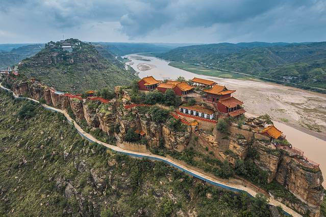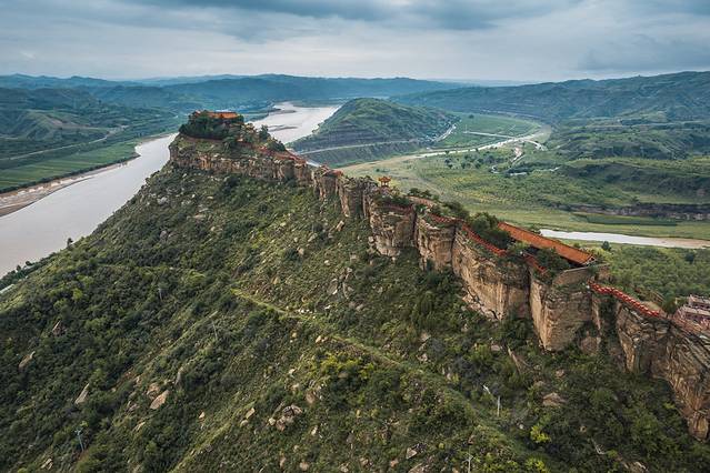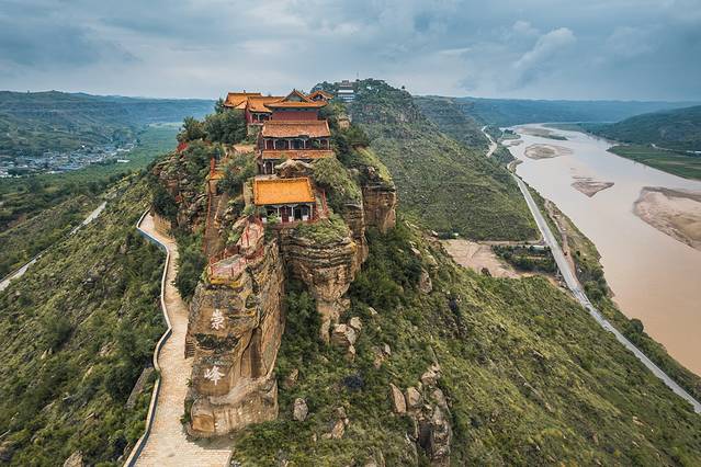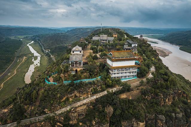在沿黄公路上我们率先抵达的便是贺家川镇东南方向的天台山。山体拔地而起500余米,云飞雾漫,地势险绝,黄河和窟野河从东西两侧依山而过。1936年春,刘志丹率红28军在这里誓师东渡黄河,给天台山留下不朽的传奇。