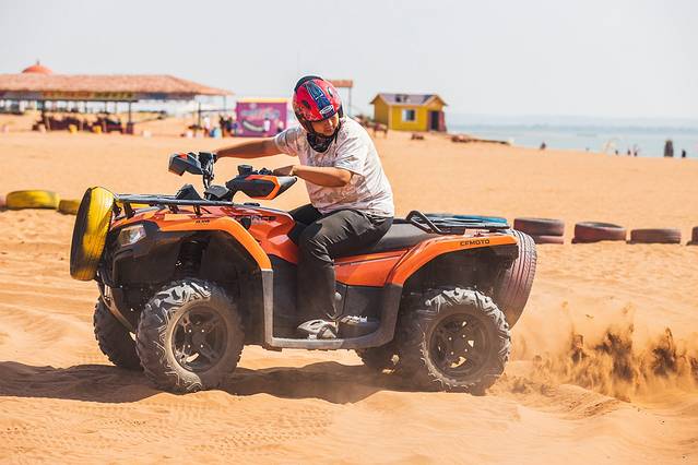 有的同伴去玩骑马和射箭了,我则冲向了奇幻乐园,一个既属于大人又属于小孩的游乐天堂。在滑道上坐着轮胎尖叫着感受重力加速度,在曲折的赛道上骑着沙滩越野车卷起滚滚沙尘……