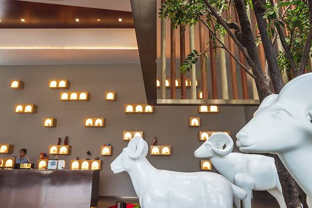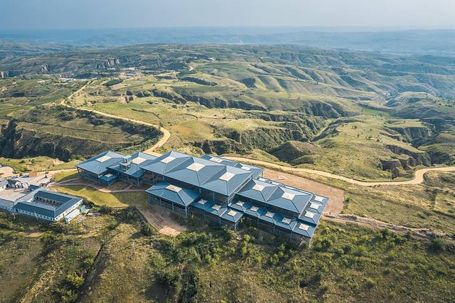 酒店的设计融黄河驿站文化、黄土高原文化、窑洞民居文化为一体,将这些地缘属性的符号通过现代艺术的设计手法呈现,建立建筑、环境和人之间映衬共生的关系。