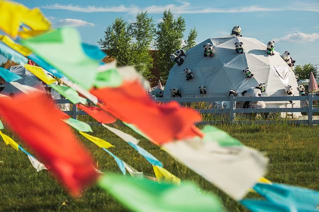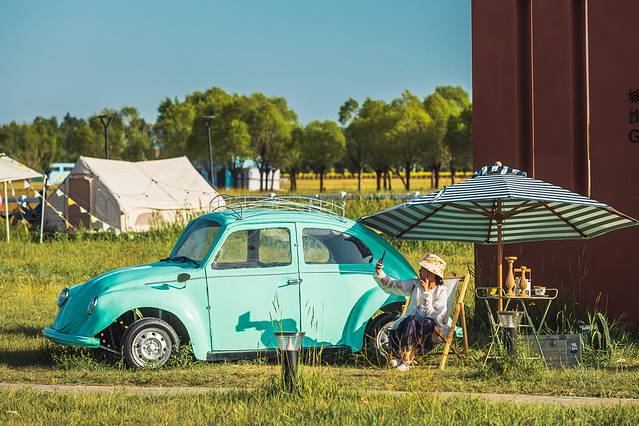 我们在游客中心乘坐景区观光车,依次经过观景台、音乐公路、湿地栈道、千亩花海、林间小院、马场、射箭场、蒙古包、泡泡酒吧、露营基地……你能想象到草原上该有的一切,这里都能找得到!