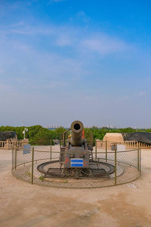 “内筑土台三方,中大旁小,高四五丈。” 中间大炮台高6米,长宽各50余米。台顶四周为矮墙,墙下暗炮眼8处,置炮52尊,炮台四周围墙900余米。