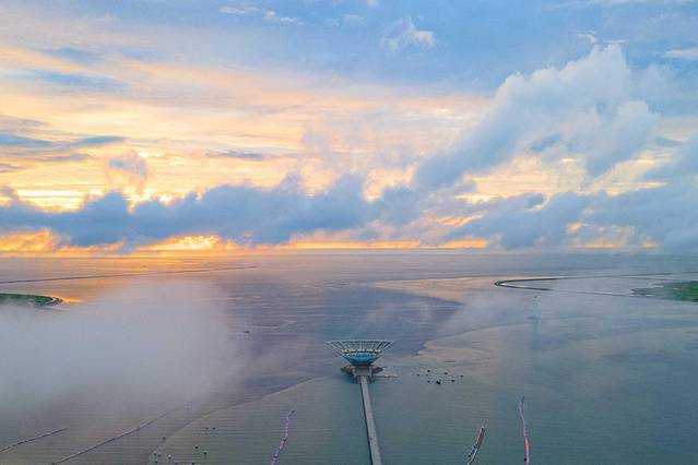 夕阳时分,漫步牛耳广场,感悟海风绿韵,看一场真正的海上日落。