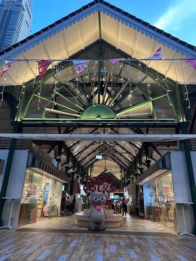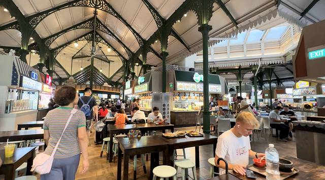 ▪ 的士司机推荐了附近打卡点★老巴刹(Lau Pa Sat)食街★据说是包罗万象,各色口味。去了以后发现,其实就是在繁华高楼林立环抱中有一个建筑风格迥异的全敞开式美食街。通俗讲就是咱的大排档,倒也是各国饮食融汇,基本8-15块新币就可以搞定一餐,周边上班的人也经常光顾。★特别提示★ 在新加坡这种食街都需要自己收拾餐盘到指定地点,据说不收会被警告或罚款哦。
