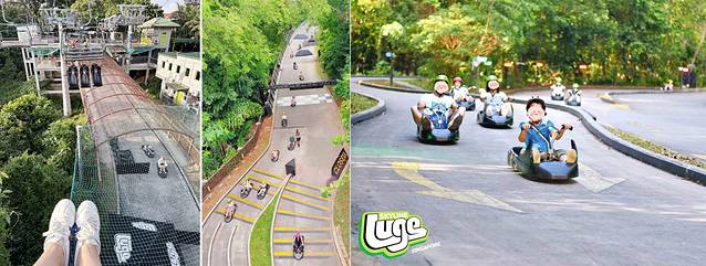 ▪ 沿着硬石酒店大厅右手泳池入口方向直走,穿过欧芮酒店大堂,走过一条商业街来到亚当和夏娃的雕塑大厅,延背后的门出去就来到了圆形广场。还有很多种通往圆形广场的路,请自行探索吧!环球的大门、马来西亚美食街、捷运海滨站就在眼前不远。捷运英比奥站、海滩站下车都可以找到luge,最好提前一天买票,我们当天下午3点多过去,当天的票就已经售空。第二天下午5点以后的票几乎没几张(因为5点以后会比较凉爽,且有机会欣赏夜景,所以这个时段最火。周日-周四7:30关门,周五周六到9点。