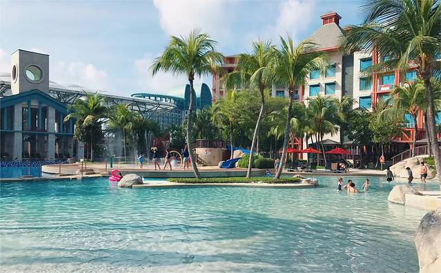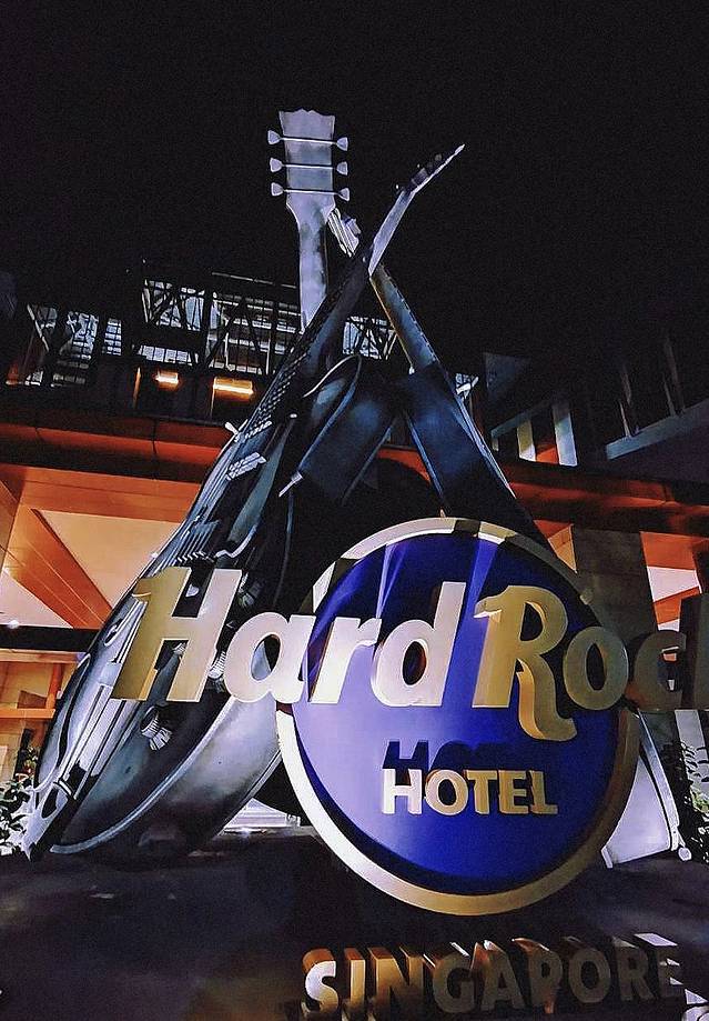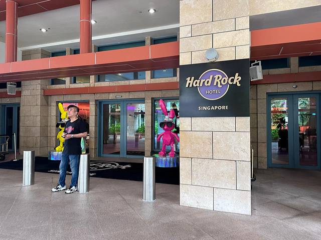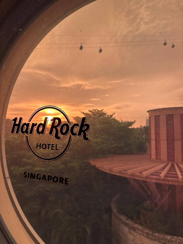▪ 圣淘沙岛上的住宿安排,考虑到主要游玩和用餐区域集中在名胜世界周边(环球、SEA、水上世界、Skyline Luge等)就选择了基本位于C位且拥有大片泳池的★硬石酒店★(Hard rock hotel)5钻。2010年开业,摇滚主题酒店,设施略显陈旧,没有浴缸。但房间够宽敞还有阳台,标准间单床有1.35米,据说床下还有推拉床,可以方便多人入住,但我自始至终没发现。因为岛上一早吃东西不方便,妥妥就选择酒店自助餐,品类繁多满足所有人的口味,8:30以后可能需要排会队。含早价格略高于市区约2600元/晚。