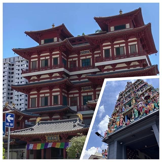 ▪ 吃饱后想溜溜食,就Google 地图步行到了★牛车水(China town)★,可能时间有点晚很多非核心街区的店铺都关门了,路过了佛牙寺、马里安曼兴都庙(印度教),建筑风格独特很有看点。当然别瞎拜,瞻仰即可,不然还愿成本有点高。