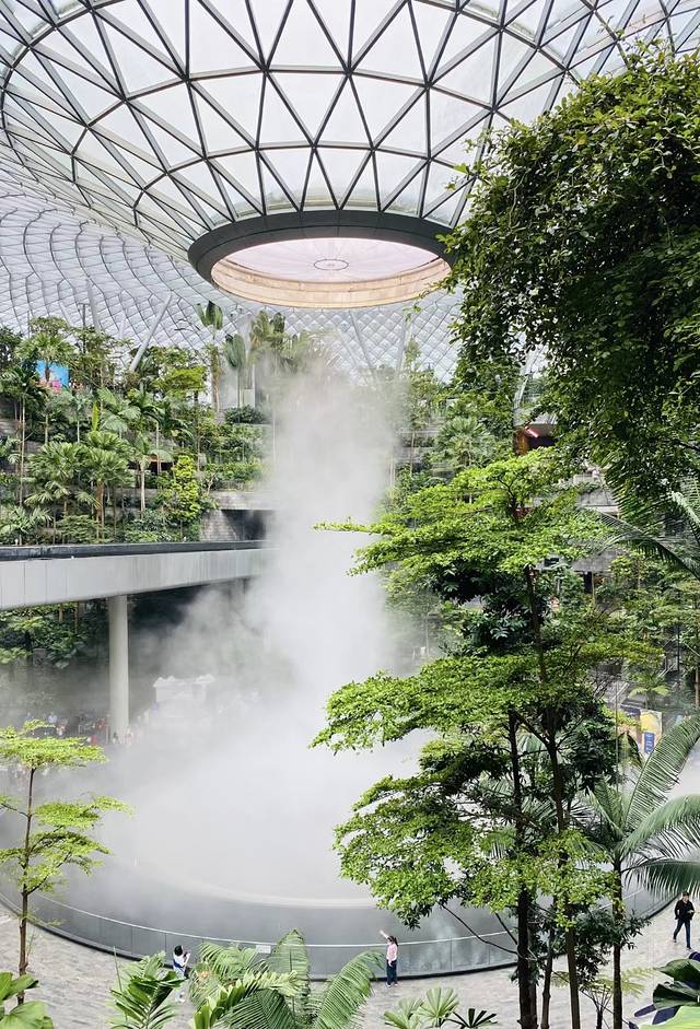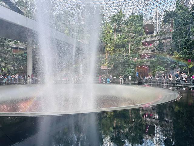 ▪ 新加坡应该是唯一一个把瀑布搬进机场的城市。被《商旅杂志》连续25年评为“世界最佳机场”同时也是“旅客票选最佳机场”与“排名第一的全球最佳机场”。最著名的雨漩涡瀑布第一眼看见无人不为之赞叹,高达40米高的室内瀑布,会跟随音乐、灯光变幻。与T1航站楼入境大厅相连,T2、T3航站楼也有连桥想通。还融汇了星空花园等游园玩乐项目(商场五层)。每天晚上7:30-12:30每半个小时都有免费灯光秀。