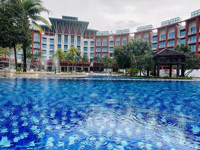 ▪ 2、室外游泳戏水设施是一大亮点。人造白沙滩,超长泳池(深1.4m)、滑梯,既满足成人游泳的同时也让小朋友尽情玩乐。需要注意的是,没有常驻安全员哈,自己的娃自己看好。室外泳池晚上8点就关闭了。因为返程的飞机是夜里,但退房最迟是中午12点。还想再玩水,就和前台沟通了一下,也爽快答应了。先收拾好行李check out后存在服务台,留一张房卡进出室外泳池区域,同时泳池入口有专门供冲淋和如厕的换洗室,干净方便,就无需再回房间。