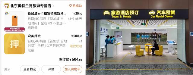 ▪ 网友推荐买电话卡,基本上使用5天,每天上限1-2个G的话也就30块左右。但因为手机不能实现双卡双待,需要保留原号码进行联络,果断选了移动WiFi,每天20块左右。可以就近连多台设备,4G不限速不限流,押金500元,机场有直接取还的服务台还是很方便的(工作时间8:00-24:00)。