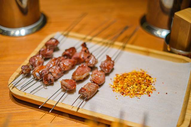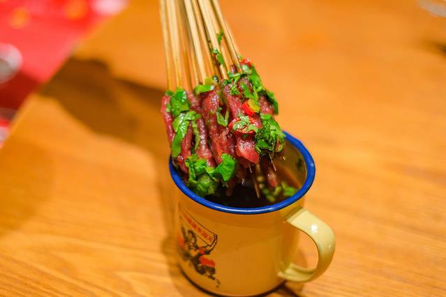 盖州的小串属于偏甜口的,小串一口一个,趁着热乎,带着铁签的热劲儿可是撸得很过瘾。