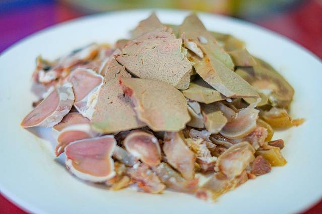 一羊多吃,内脏是必不可少的重头戏。把羊血、养肝切成小片小块,收汁炒制,两道色泽优美的菜就又成了。食材新鲜没的说,颇具营养的炒羊血更受青睐。