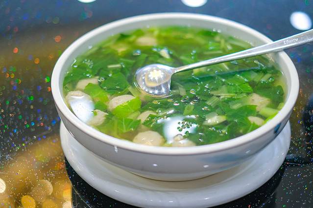 大头宝是营口的特色鱼,而鱼丸绝对不是买的那种面粉很多的火锅丸子,是真材实料的鱼肉自制而成的,和白菜叶一起煮,很清爽,且保持了鱼丸的鲜。