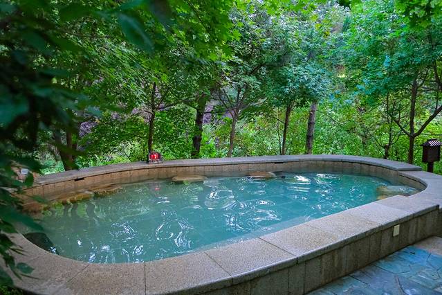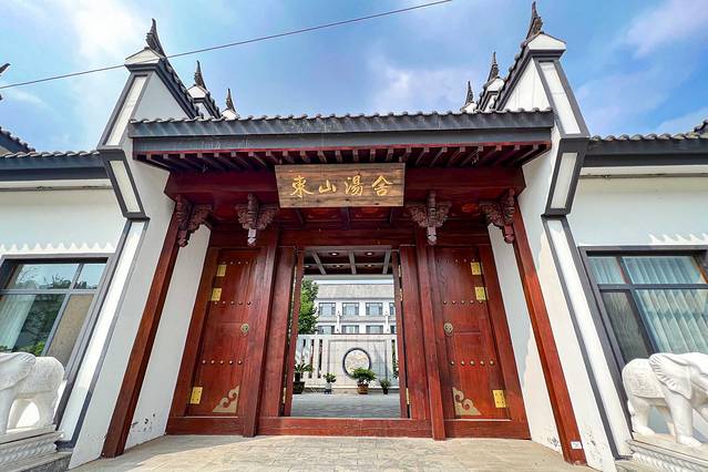 双台镇东山汤舍占地7000平,是集温泉、餐饮、商务、文化于一体的主题酒店。每间客房室内都设有独立温泉泡池,套房独自拥有室外泡池。