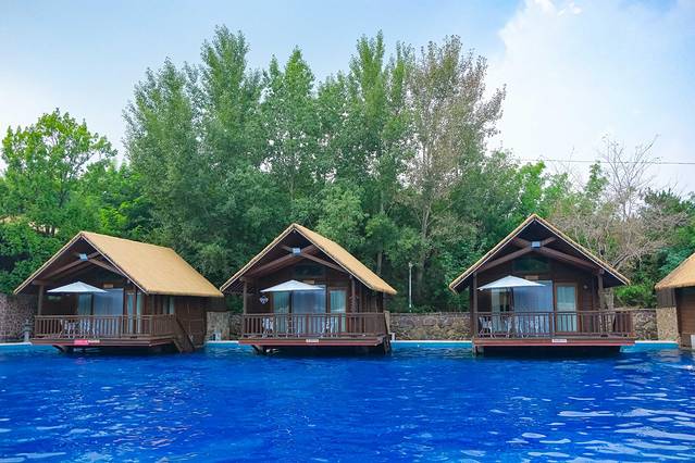 虽然每栋别墅外观相同,但内在却别有洞天,能够满足更多人的不同选择。别墅内外均设有特色的温泉泡池,温泉水采自地下200米,最高温度可达97摄氏度,富含多种对人体有益的元素。室内还配备了休闲娱乐区,专业豪华ktv可以让您大展歌喉,还有棋牌室和桌球,在这里玩得很开心~