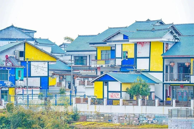 右二村非常具有特色的民居,外墙基本以黄、红、蓝为主色,植入了“蒙德里安”艺术元素,成功打造“蒙德里安小镇”。进入村庄,就像是走入一部童话般梦幻七彩部落。蓝天白云,五彩斑斓的房屋倒映在水面,周围是草坪和树林,非常适合露营烧烤、拍照打卡,特别小清新,充满着艺术气息。