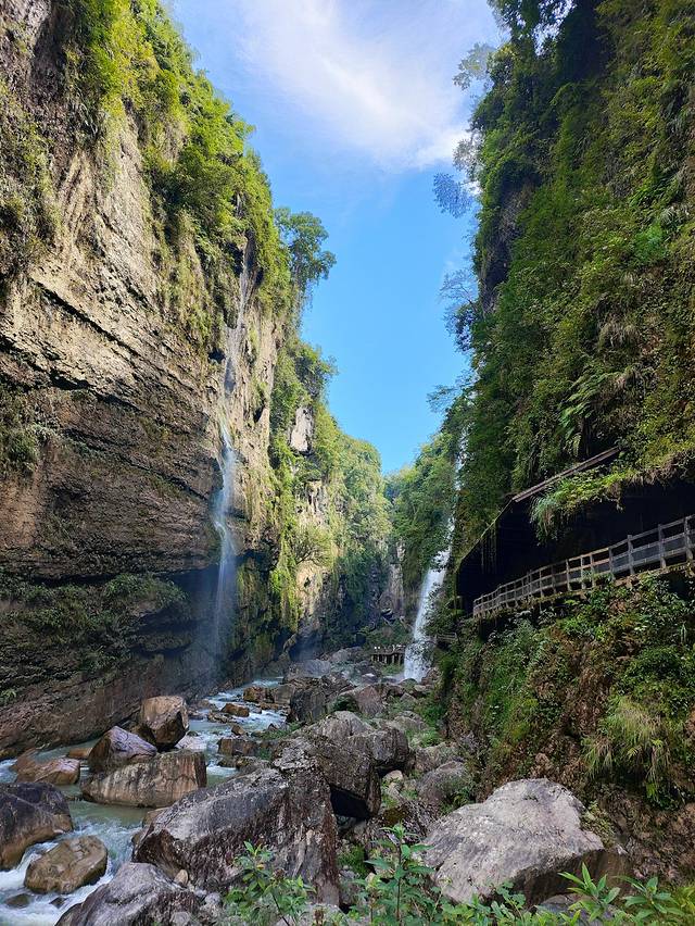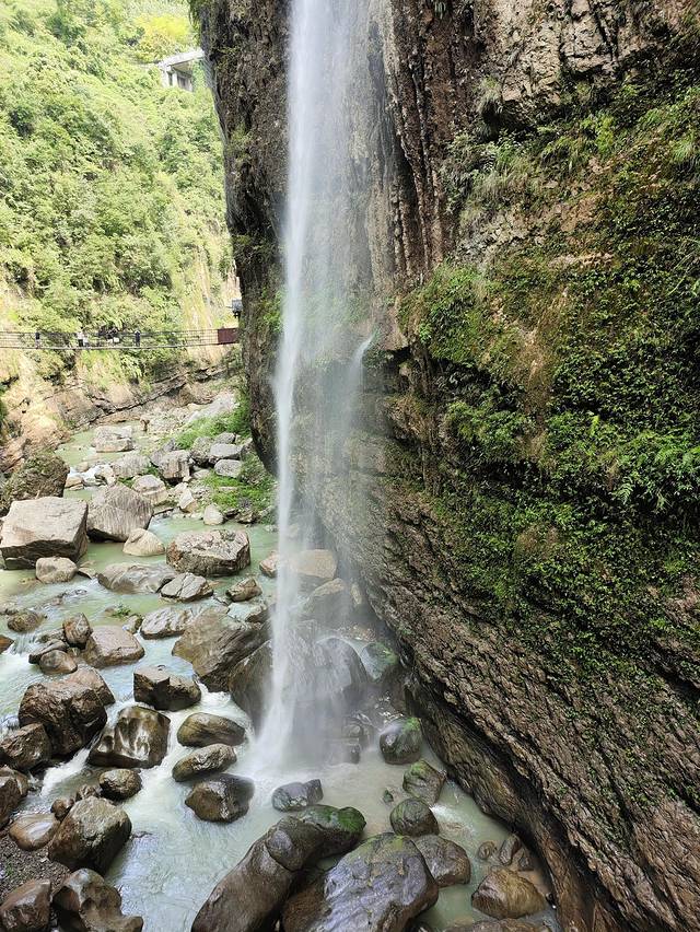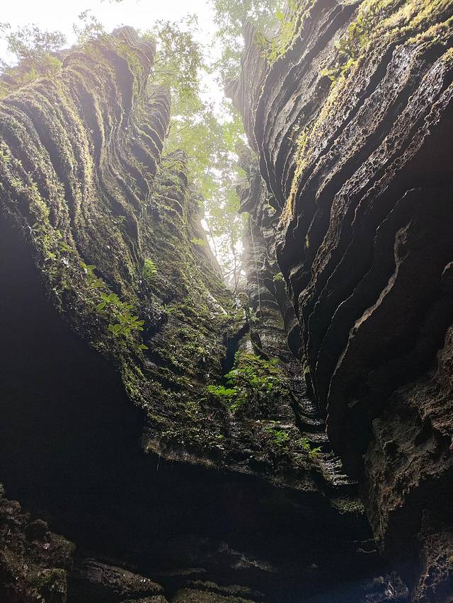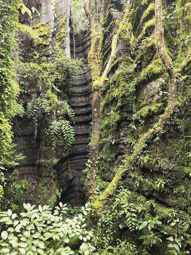 地缝一路上奇石林立,古树参天,走一小段路,就会遇到一个或几个大大小小的瀑布,或从崖顶奔流而下,或从崖壁间缓缓流出,呈现出不同的动感之美。