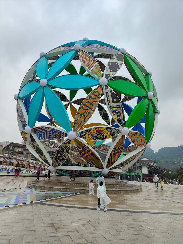 土司城里有很多旅拍店,可以租土家族传统服饰拍照。游览玩土司城大概1点多,打车去女儿城。在土司城门口看到有公交乘去女儿城。出租车司机大哥推荐了一个吃土家菜的地方,但是儿子着急去女儿城买冰箱贴,就直奔女儿城而来。