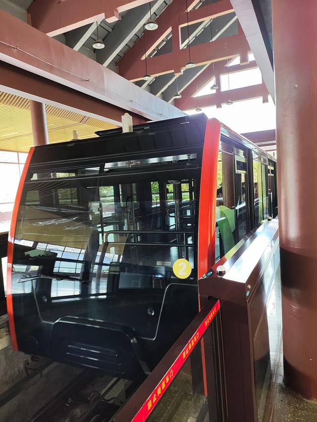 地面缆车准确的称呼应该叫地面小火车,3节车厢,没有多少座位,把你从游客中心拉到坐索道的地方。