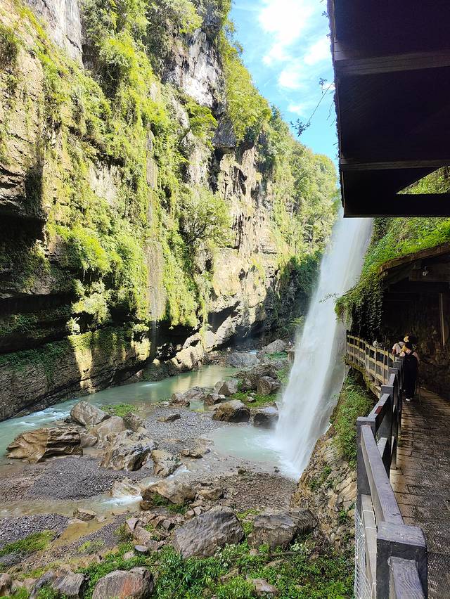 过了检票处,头顶小雨,步行几分钟就听到了巨大的水声。