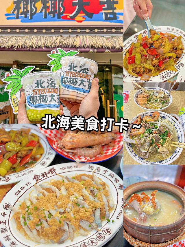 🍤虾饼、墨鱼丸🐙、鱿鱼须🦑、椰椰大吉🥥、炒冰🧊、海鲜粉🍜、蟹仔粉🦀、椒盐皮皮虾🦐、糖水、法包、椰子冻、炸春卷等~