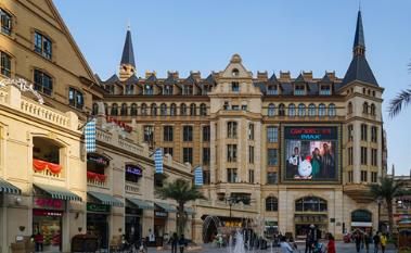 世界城光谷步行街,是武汉一个时尚区域,非常繁华热闹,步行街由东向西分别是美式、西班牙、北欧、英伦四大建筑群,展现了不同的异域风情。