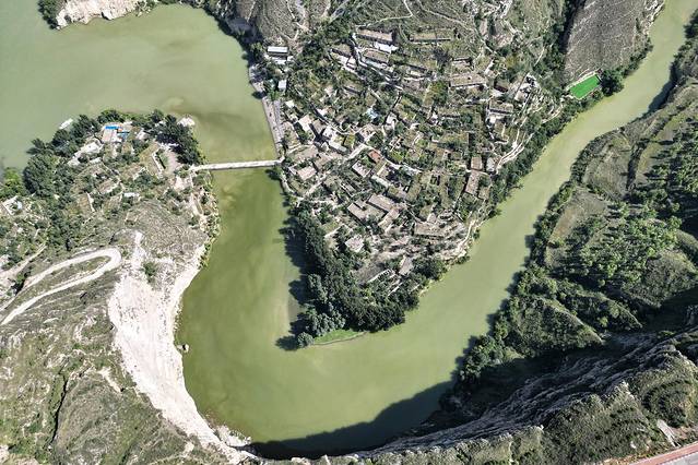 关河口村位于河川的谷底,从黄河1号旅游公路的观景台看下去,大概有100多米的深度,关河将村子一分为二,中间仅有一座很窄的桥。这里是偏关境内关河流入黄河的河岔口,距县城只有13公里,在晚清时为偏关商埠码头。