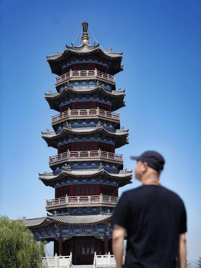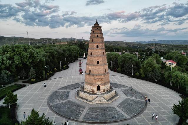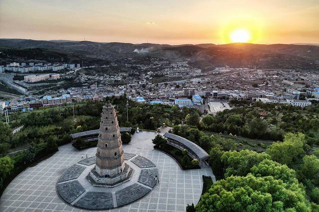文笔塔,位于偏关关外的东山上,明朝天启年间所建,是一座保存完好的空心砖塔,也是著名的国家级保护文物。塔尖直指苍穹,塔上的牌匾题着“文笔凌霄”四个大字。对面有一尊高大的孔子雕像,展现了当地尊儒重教的昌盛文风。