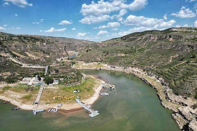 这是老牛湾景区中的宁静古村,村子依山就势而建,窑洞房屋就地取材,全部用石头一片片堆砌而成,房屋错落有致,恍如世外桃源一般的宁静美好,如今这里原有的村民早就搬去他处,这里正在进行着新的变化。