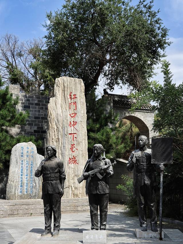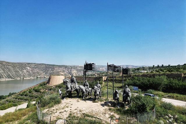 在寺沟村黄河岸边矗立着这组杨家将群雕,雕像栩栩如生仿若至今能听到马蹄嘶鸣的声音,不远处一座沧桑的烽火台也仿佛诉说着过往的历史,至今已经守卫着这片疆土。在这里你也能看到一段长约几百米的夯土城墙遗存与黄河并肩行进