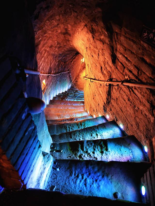 从窑洞中的土炕进入地下长城,瞬间就没有了早秋的燥热感,一股凉意扑面而来,可以参观的洞道中,宽度可容一个人通过,高度足够一米七左右身高的人直立通过,部分洞道可能需要弯腰才可通行,洞道两侧会有一个一个不同大小的洞穴,洞中也有一些雕塑,用以展示这里的用途。洞道中如今还加上了绚烂的灯光,行走其中仿佛穿越时光的隧道,一定要来感受一下!