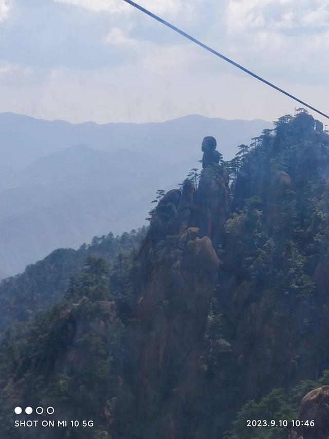 索道下山,一个人坐在摇摇晃晃的车厢里,心也慌慌的,站是不可能站的,就只能坐着左看看右看看。只一眼就觉得这块石头很像一个人,你们觉得是谁?
