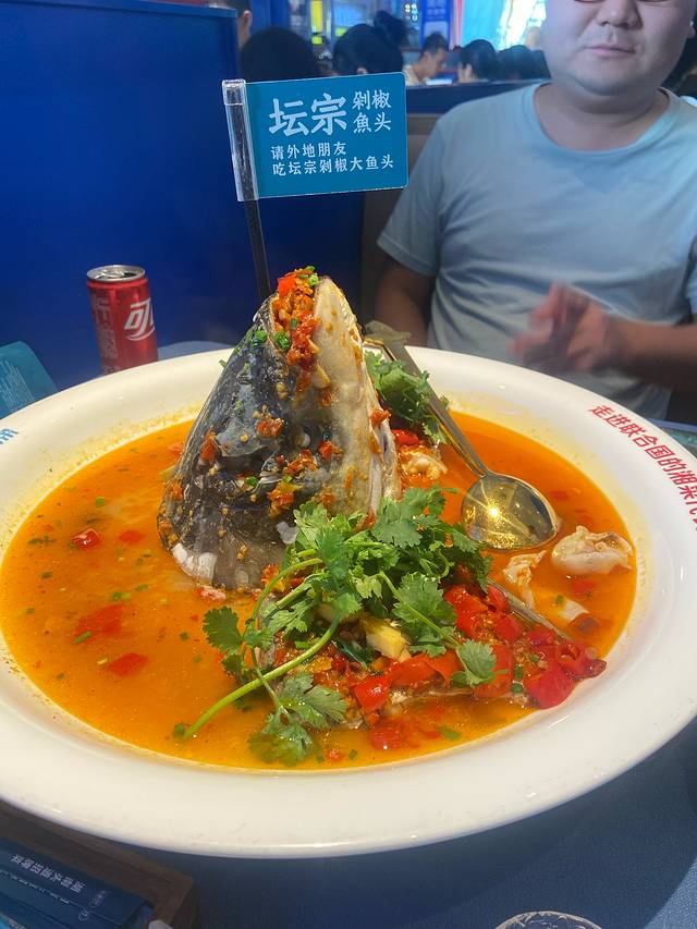休息到两点左右,必须得起床吃饭了,要不然赶不上博物馆行程了。这一顿必须得吃剁椒鱼头了,选了个中鱼头,还有现场的鱼头火焰表演,给娃点了份粉丝汤(不辣的),味道一级棒