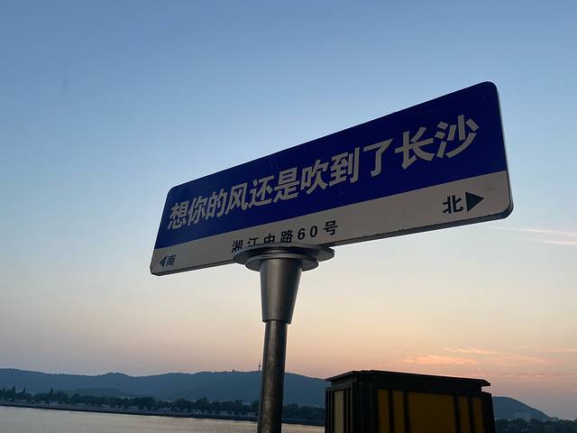 打卡结束,往前走到湘江边上,要非常接近湘江才能感受到一丝凉意,看着邮轮,吹吹凉风感觉还不错。
