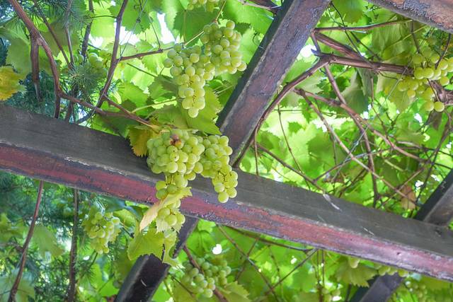 博物馆就像是一个小公园很舒服,藤蔓上还有绿葡萄垂钓