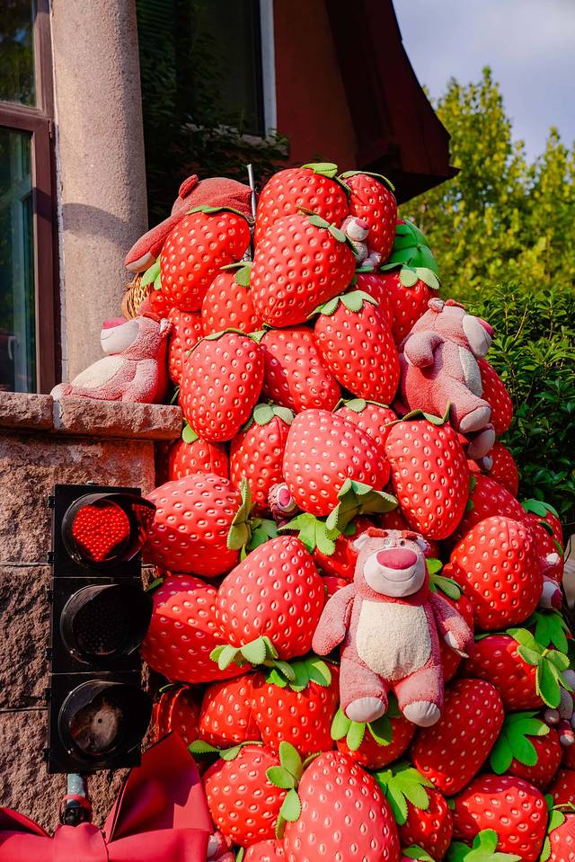 汽水杯走入正门就能看到一个蓝色的汽水杯上面大大地写了两个字青岛,很有标志性!.粉色草莓熊还有人不喜欢草莓熊的吗,一整片草莓熊和草莓组成了一片粉色的打卡墙,少女心满满