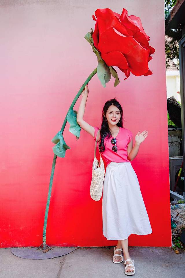巨型玫瑰花浪漫元送玫瑰花这里也有啊,而且还是Plus版本的人站在玫瑰花旁合影,超级浪漫粉红色的墙这是属于青岛的文艺小浪漫