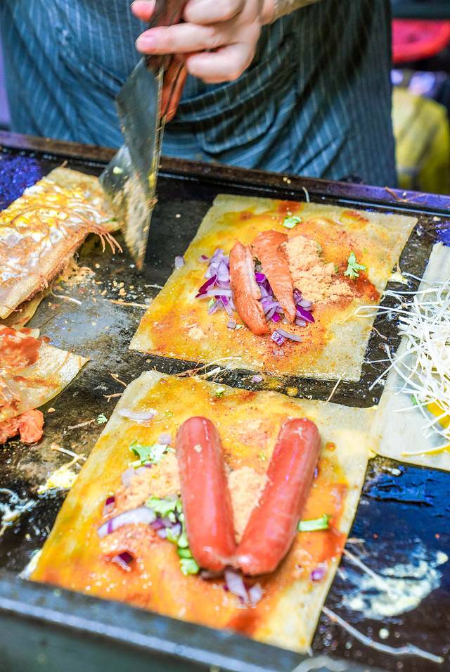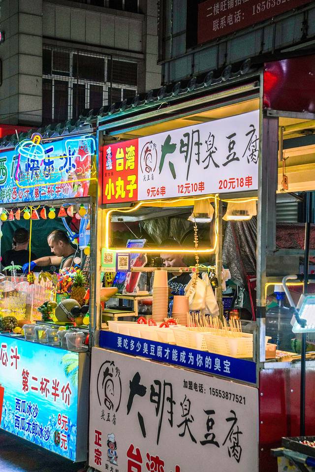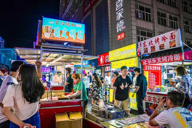 从下午四点半开始,小摊贩们推着自己的小推车一起聚集在此,做着自己擅长的美食,等待着来自五湖四海的小吃。